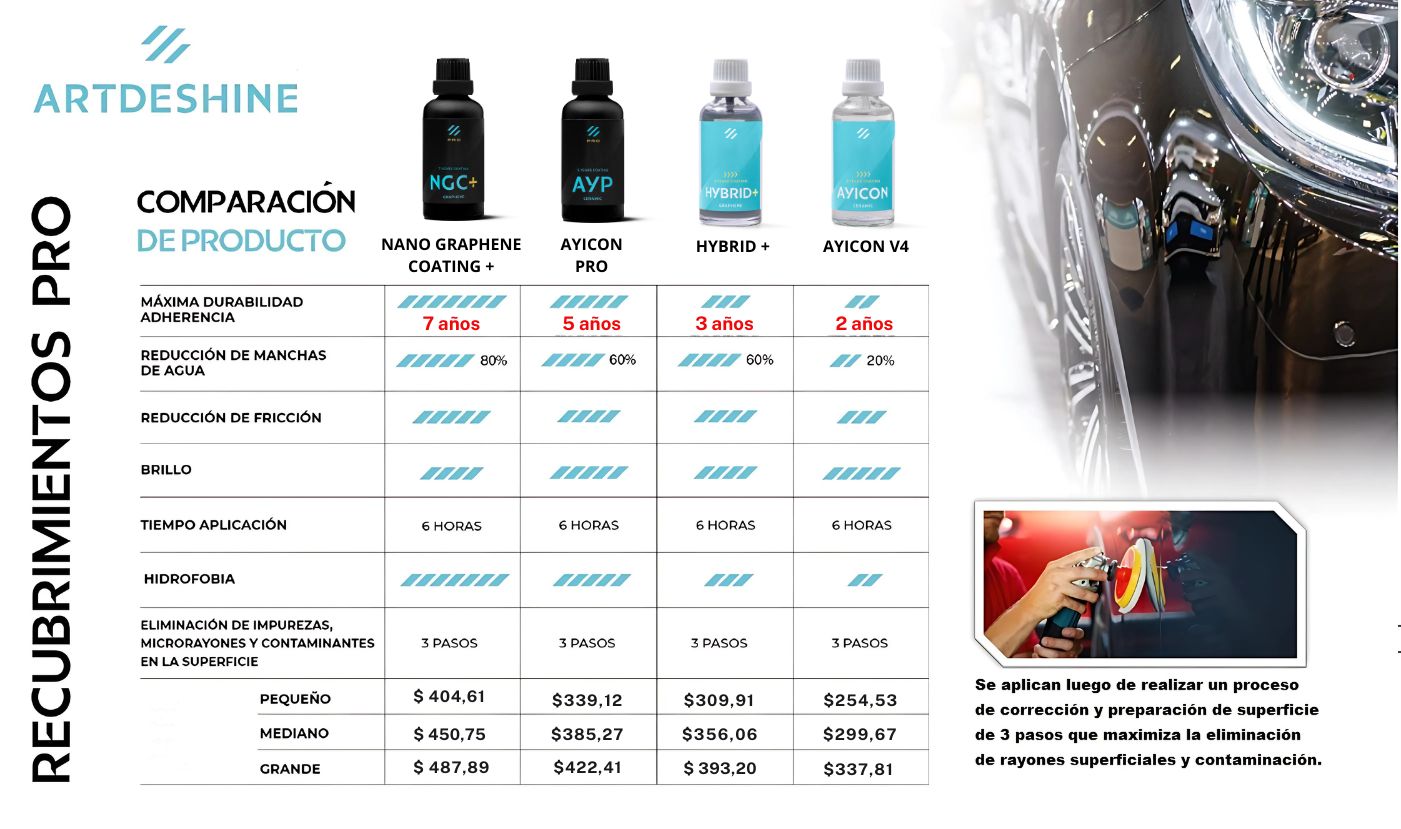 Se asegura que los nano recubrimientos cumplan den máxima protección, hidrorepelencia y exalta el brillo.